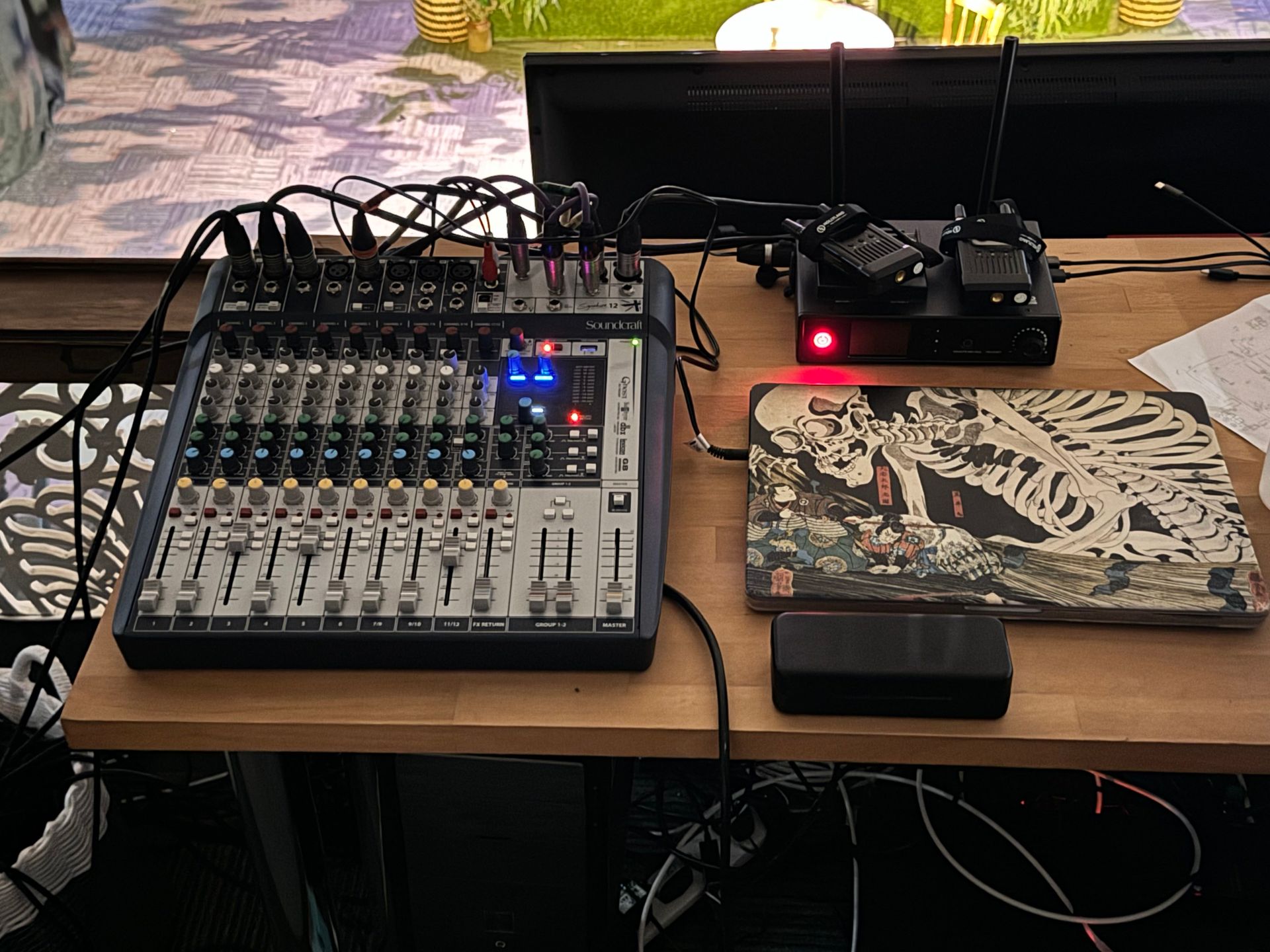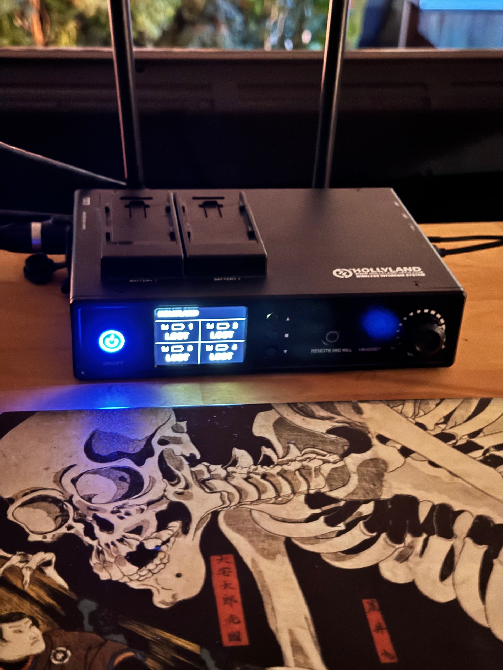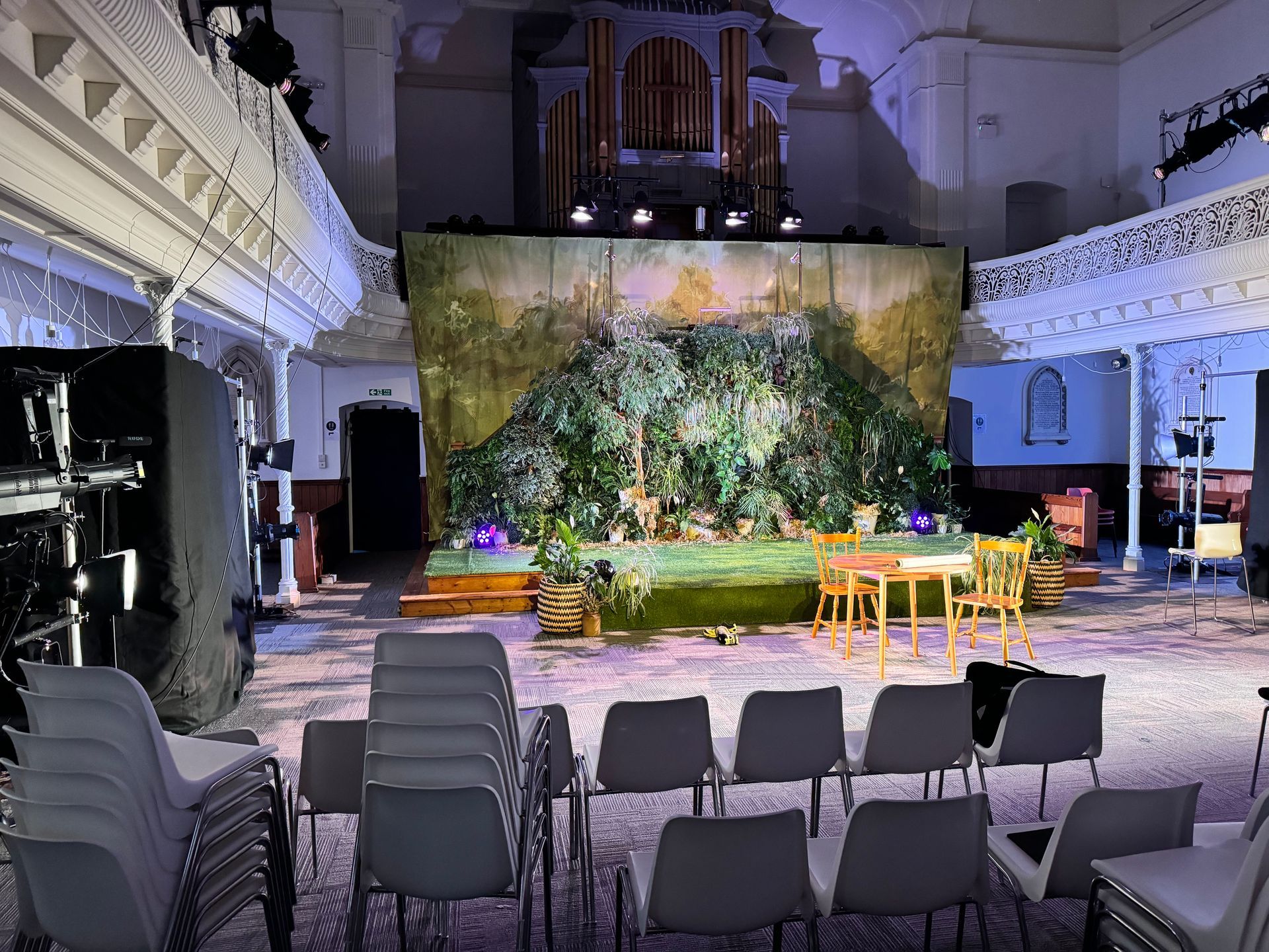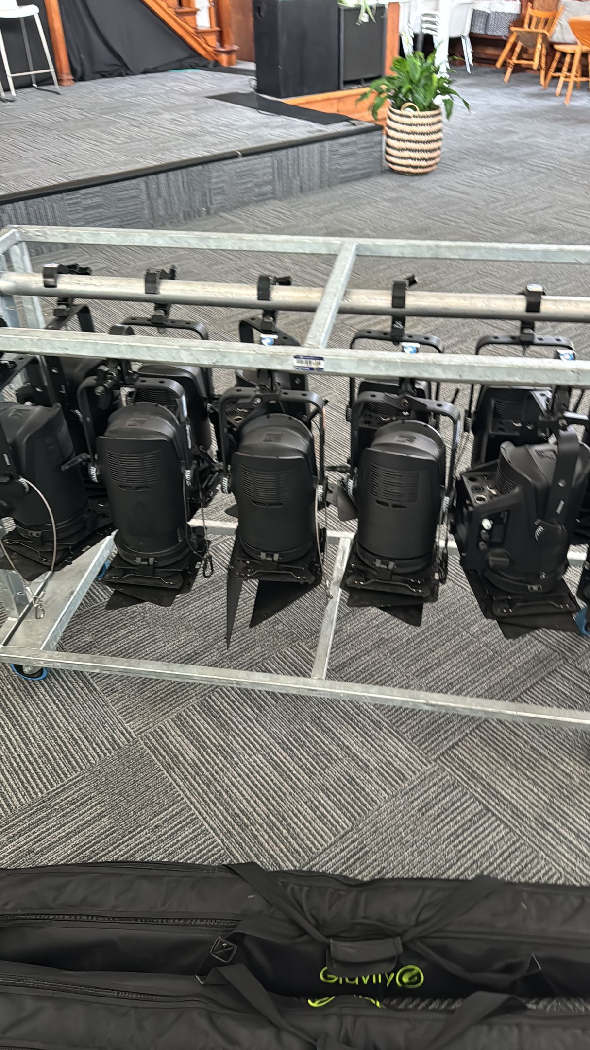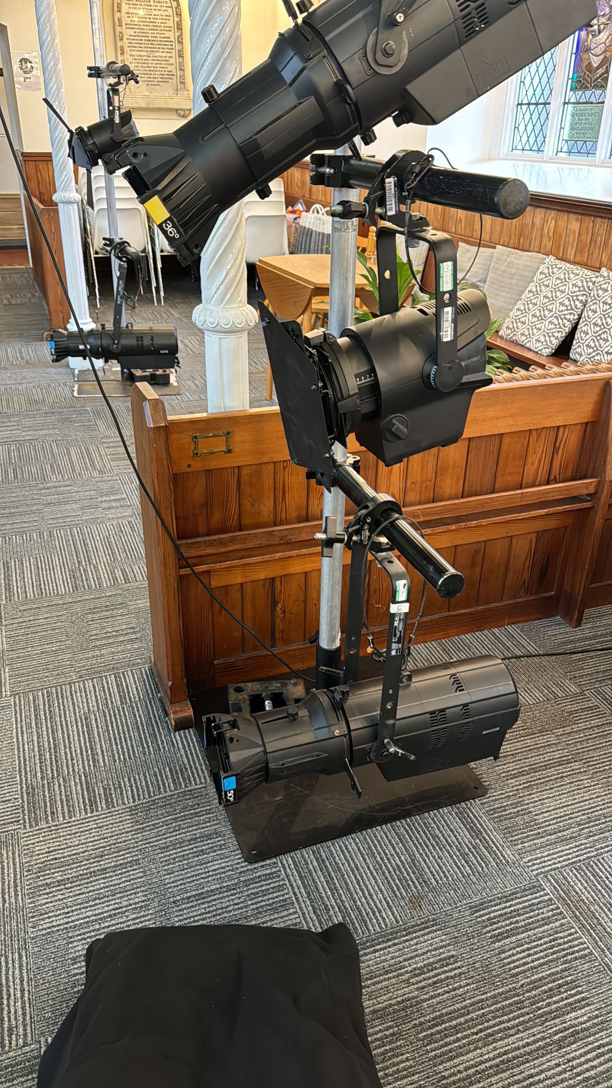 On the sound side we were using a Soundcraft Signature 12, using the church's HK Audio Premium Pro 15s & Premium Pro 18 Subs, with 1x Laney CXP-110, 1x Laney CXP-120 and a Behringer F1220A monitors that were used as left right and centre surround sound for effects that the director wanted. We also used Hollyland Mars T1000 wireless comms to keep everyone connected during setup and the show.