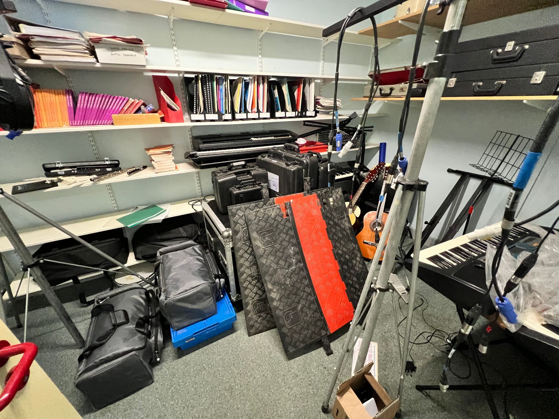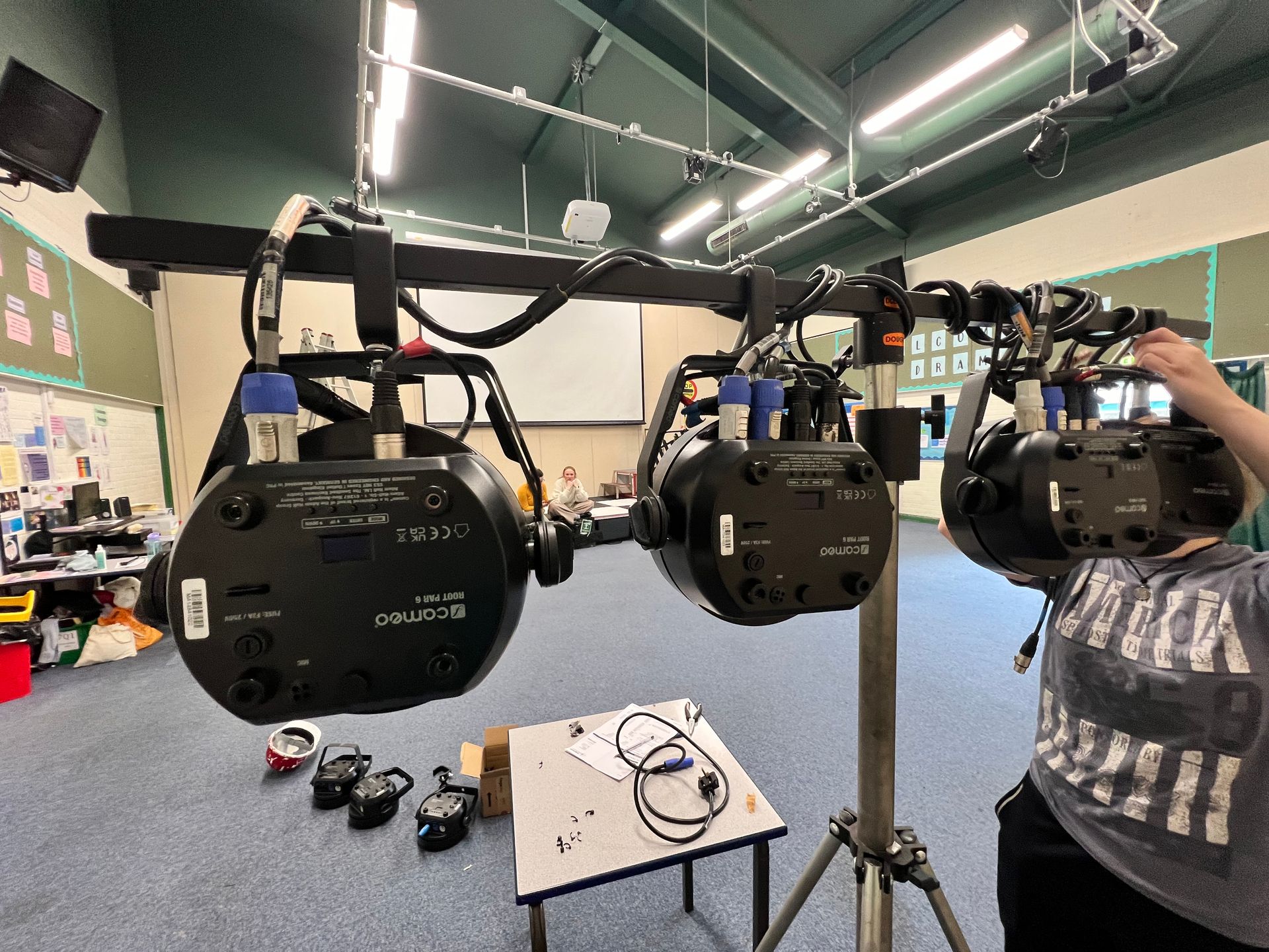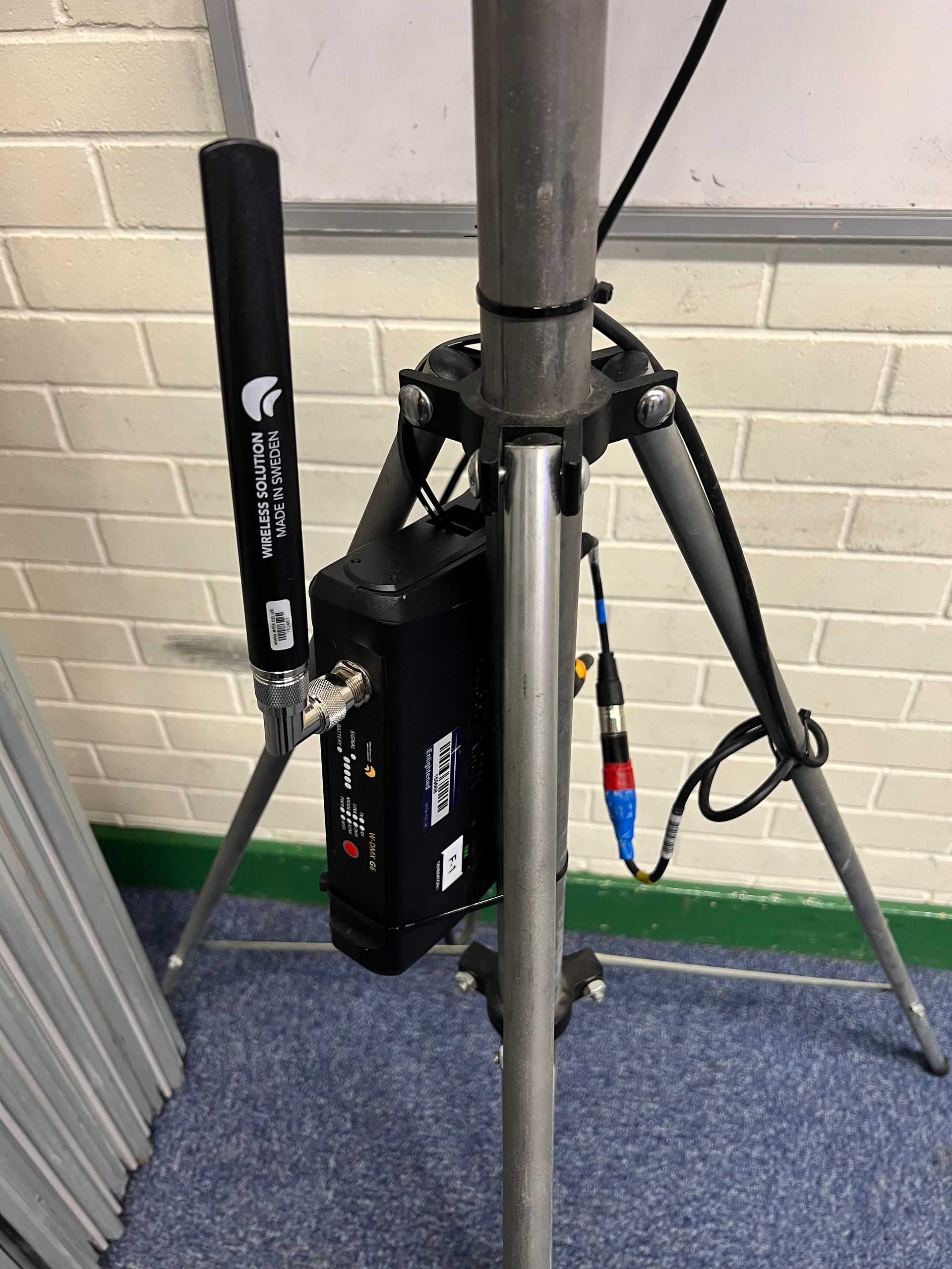 Lighting: 8x Cameo ROOT PAR 6's with 4 either side of the pull out seating area connected via Powercon and DMX going to a Wireless Solutions W-DMX Blackbox G6 and Wireless Solutions Microbox G6 for each respective side, in the rigging there were 2x Chauvet Intimidator Hybrid 140SR's alongside a KAM XY Laser connected via mains and DMX also going to another W-DMX Microbox G6 which fed back to the tech box with another Blackbox G6 acting as a reciever while all the others were transmitters.